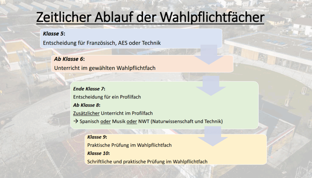 Die Schülerinnen und Schüler können zwischen den folgenden Wahlpflichtfächern wählen: