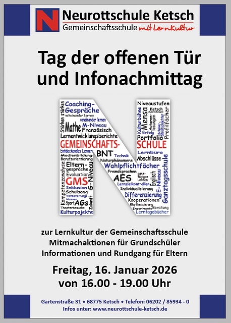 Am Freitag, den 07.02.2020 öffnet die Neurottschule von 16.00 bis 18.00 Uhr ihre Türen für alle Schülerinnen, Schüler und Eltern, die Interesse an der Gemeinschaftsschule ab Klasse 5 haben und diese bei einem Rundgang persönlich erkunden möchten.