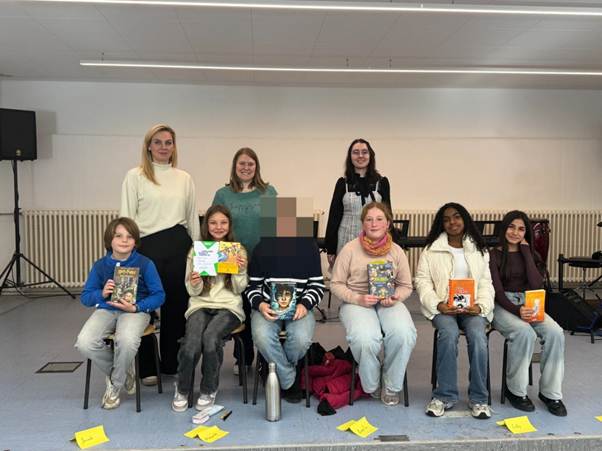 An diesem Dienstag trafen sich die sechs Klassensiegerinnen und Klassensieger der 6. Klassen unter den Augen einer Jury zusammen, um die Lieblingsstellen aus ihren Büchern vorzulesen. Margarita Worm (6a) las mit einer flüssigen Lesetechnik und einer gelungenen Interpretation aus „Cityflitzer gegen den Computerhacker“ vor und stellte ihr Buch so ansprechend dar, dass sie sich gegen eine starke Konkurrenz aus der 6b und 6c, u.a. von Lilly Milch, die aus „Die schlimmste Klasse der Welt“ vorlas oder Lorin Ceri (6c) mit „Für immer Alaska“ von der Jury zur Schulsiegerin gekürt wurde.